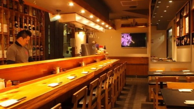 カウンター席とテーブル席。魚介系居酒屋の王道といった店内。